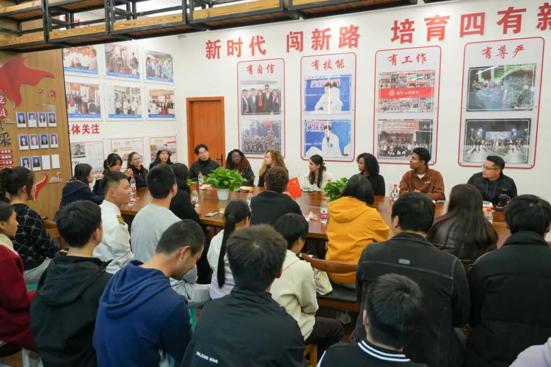重庆调研内容涵盖乡村、城市与国际合作三个维度。师生们在彭水县与地方政府座谈,走访乡村振兴国际合作点,并在苗寨与村民交流基层治理经验。在保家镇东流村,他们通过入户走访与院坝会进一步理解乡村建设逻辑。随后的城市调研包括城市建设规划馆、史迪威博物馆、国际物流中心与人和街道,大家进一步了解城市规划建设、城市基层管理经验及中外文化交流历史。与此同时,学者们在鲁能巴蜀中学进行中外文化交流活动及体育赛事活动,并在四川外国语大学与专家学者围绕乡村振兴、社会治理与文明互鉴展开专题研讨。